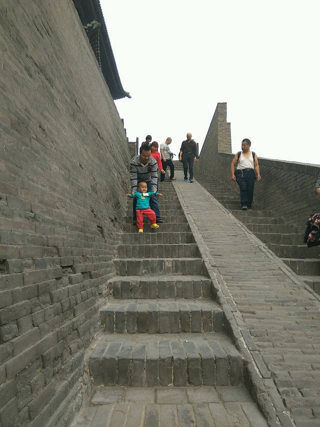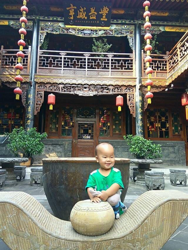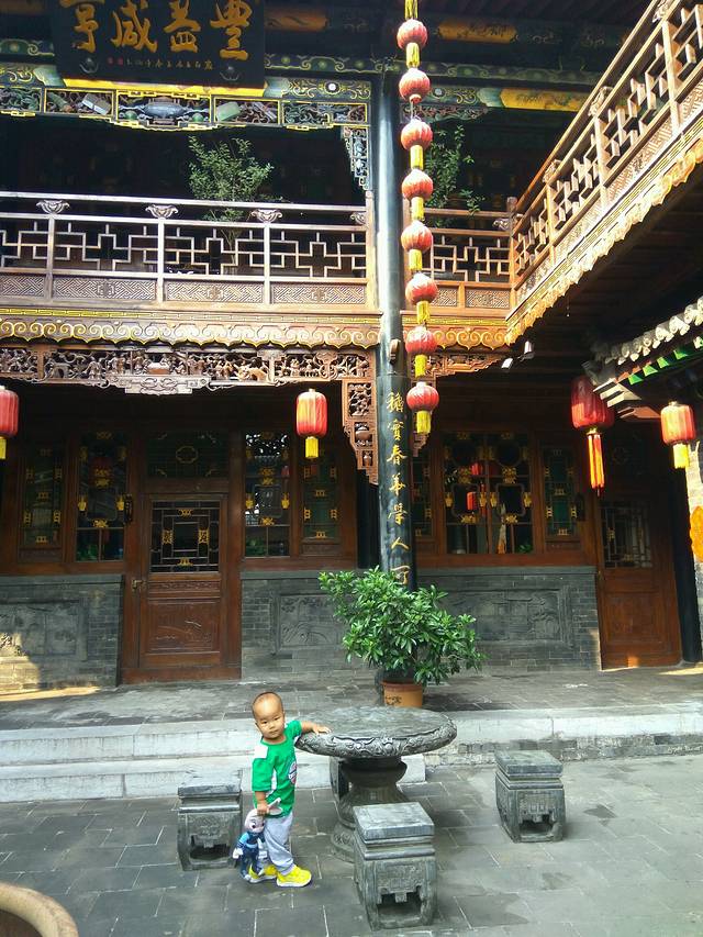 酒店就在古城正中,我们收拾好就去玩了,(30号下午就在古城街上转悠了下,1号才买的门票)门票130元/人,网上买和现场买一样的价格,但网上买取票麻烦点,60岁以上的就免费啦,赞一个~这个门票好像是两天有效。主要就是古城里的庙宇,票号,镖局,古城墙,县衙,富商。抱娃转悠了两天,实在实在是把我累瘫了,呜呜。主要是这些景点基本都不方便推婴儿车,很小的检票口,几进几出的院落,还有各种台阶,所以只能抱着。当然也有推婴儿车的,不过实在有些折腾。
