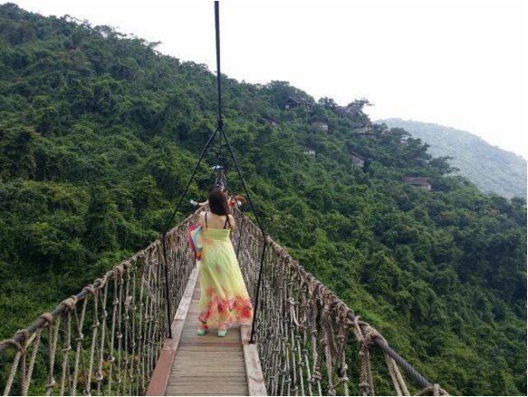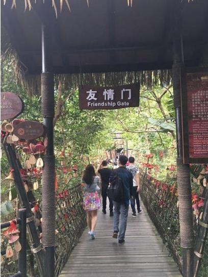 呀诺达!进景区后会一人发一个免费的讲解器,出口处会回收,接着是先做大巴走一段盘上公路,大概十分钟的样子,然后就从山顶一直往山下走,好累的。不过呀诺达的的工作人员非常的热情,见人都说“呀诺达”,给人感觉特别舒服。这边的空气真的是特别的好,真的是天然大氧吧。