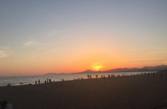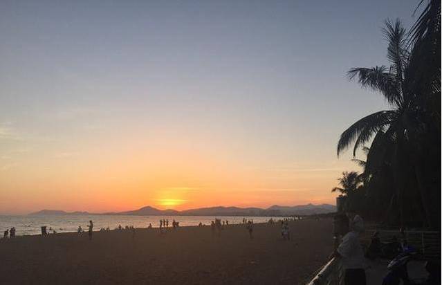 下午小歇一会,傍晚就到海边去看日落。三亚的日落真的很美哦,唯一不好的就是三亚湾这边的海水浑浊,但还是有很多人到这边游泳。