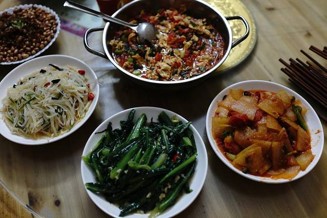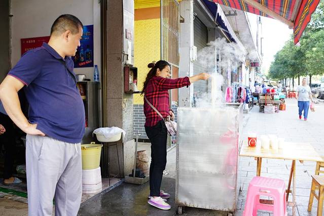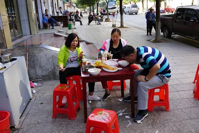 八角寨下来是在街道边的小吃店用早餐,因为人多,老板忙不过来,我们自己动手,丰衣足食。