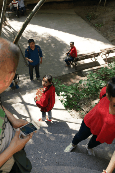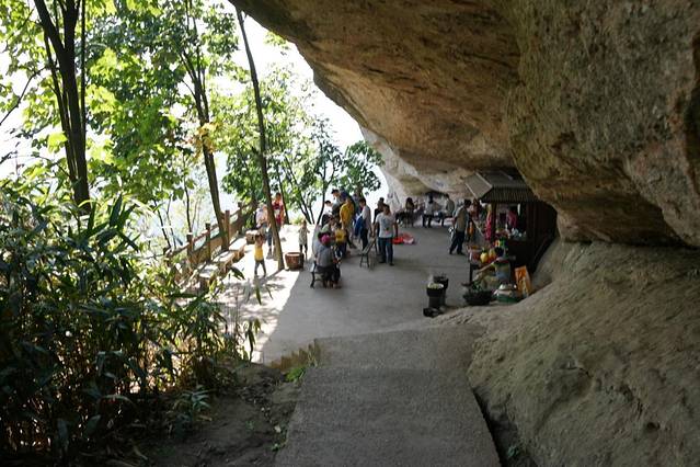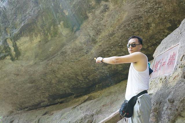这里是类似武当山烧龙头香的地方,只要出钱,便有人将香火插在龙头的香炉中,绝壁行走也算作是一种表演。