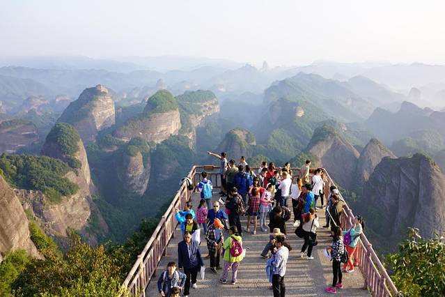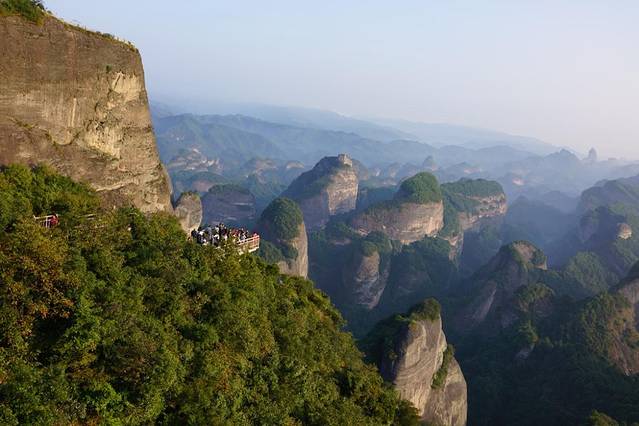2016年10月4日早登崀山八角寨景区,湖南新宁县和广西资源县之间,两省竞相售票,都属于丹霞地貌。可以从湖南入广西出,听说广西门票便宜。