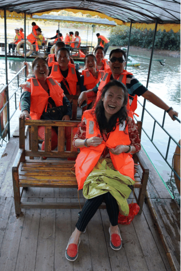 来到景区,被告知没有船了。好在景区何经理体谅远道的客人,安排了两条船加班。