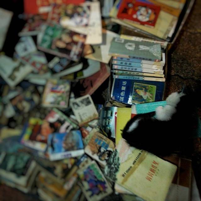 然后路上看到一家卖旧书的老店铺,书堆上睡着一直小猫