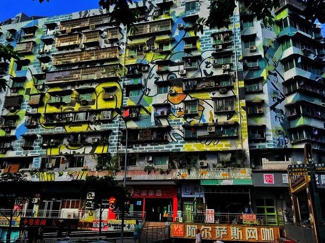 逛完磁器口,从磁器口站乘轨道交通至杨家坪站4元,再打滴滴至四川美术学院,川美门口的涂鸦一条街