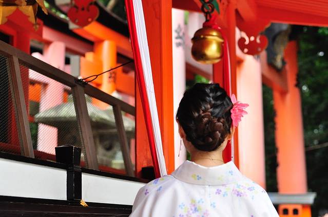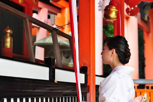 和服租赁,偶然在一个网站看到推荐的京越和服,如果提前预约,价格特别合适,基本的套餐2500日币一套,发型免费的有4个选择,LZ用的包包也是免费,头上的花朵500买下的,木屐也无需加价。性价比实在很高。