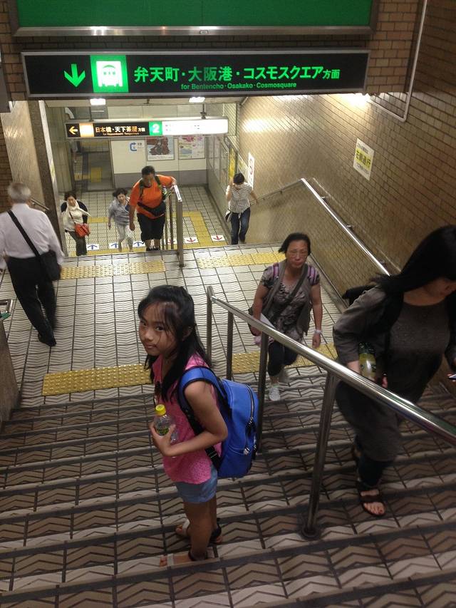 这里的留学生看到我一个人分别上下楼梯,提2个箱子,因为娃只提的动相机哈哈,于是那个留学生很热心的帮我拎到地铁售票处,好感动,在这么陌生的城市,这么热的天气下,京都和大阪有些地铁、jr不设电梯太不人性化了,不过欧洲也类似。一个人带娃的确很辛苦💦💦