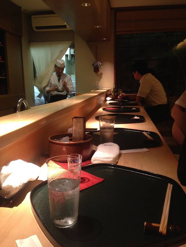 这家店面很小,没有包房的样子,一共10座正对板长,我们稍后迟到,但店家已经知道我们,只问了需要什么饮料就开始我们的料理了,真是好记性。