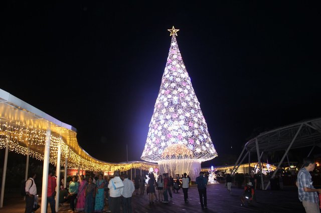 据说新加坡从11月中旬就开始到处装扮,准备过圣诞,而且各地都会有light show。金沙里面的大圣诞树