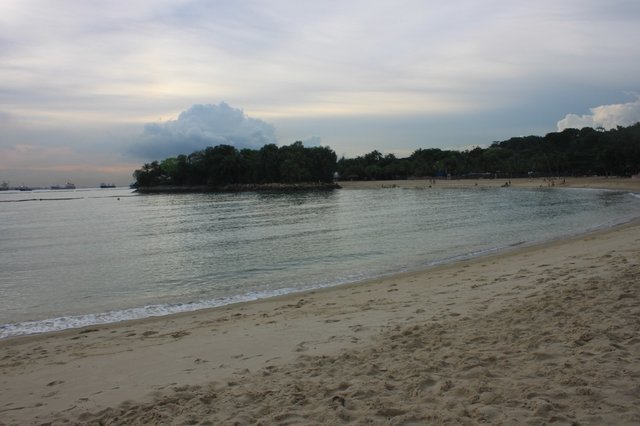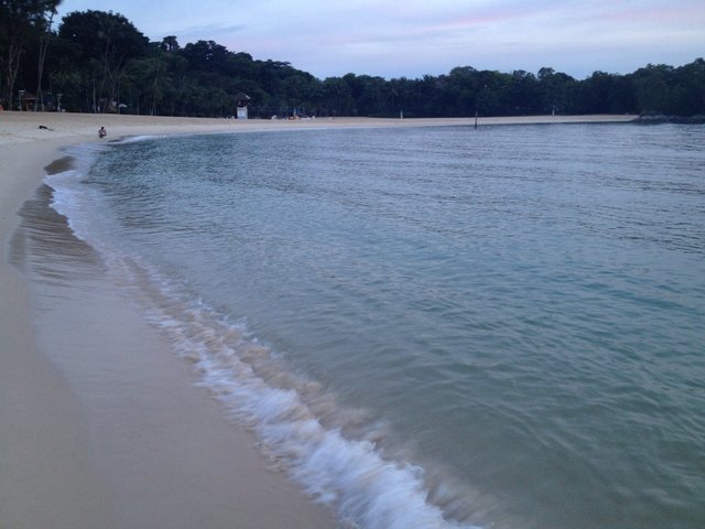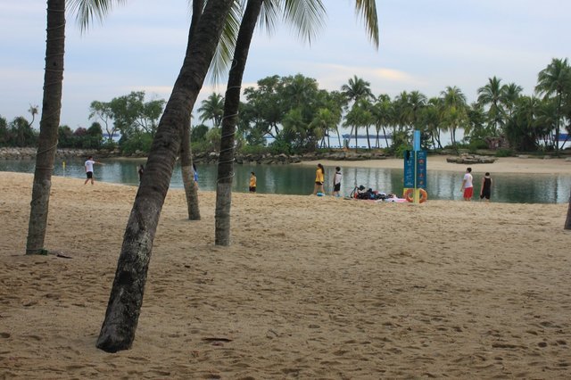 海边人不多,海水碧蓝的,沙滩也很舒服,吴尚说新加坡人民真幸福,节假日,好朋友花1新币,来这聚餐,玩沙滩排球,多好~