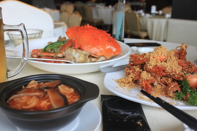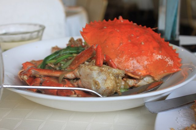 好吃的螃蟹~我们挑的是雪蟹,不是那个珍宝蟹,真的很好吃,因为是下午去吃的,不饿,而且店里没人,,,就我们一桌