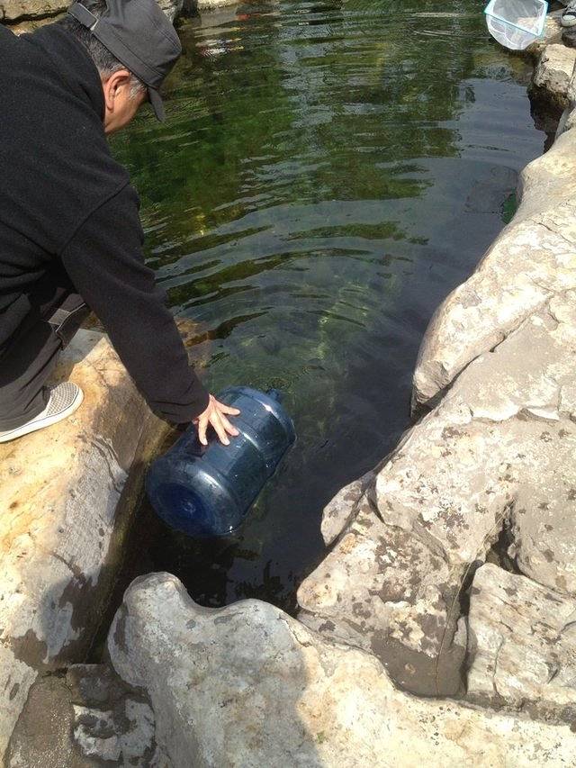 很多游客同居民一起取水,大自然与民同乐