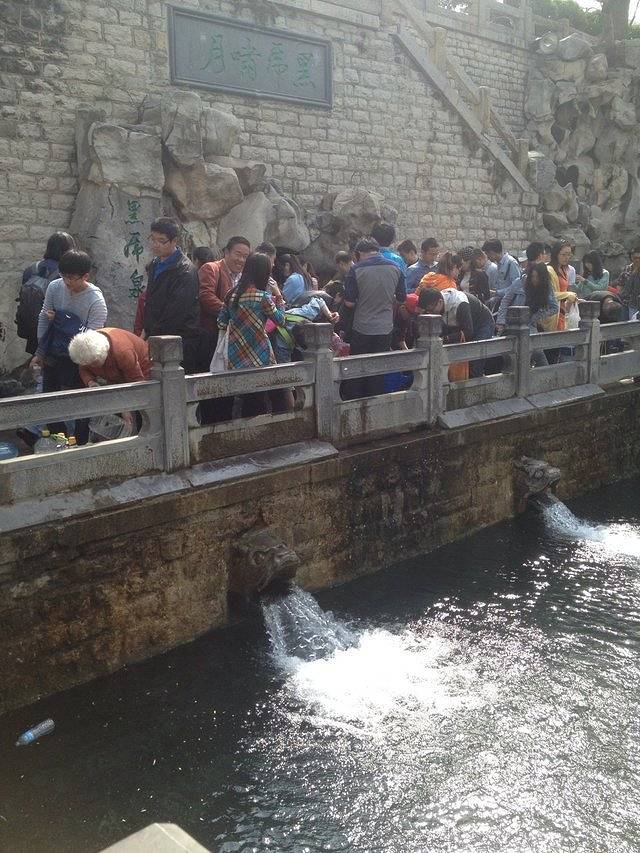 霸气威武的黑虎泉,很多人在用瓶瓶罐罐在泉口取水