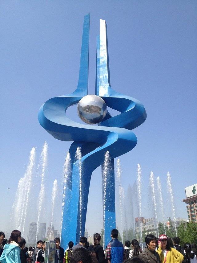 泉城广场,如果你从火车站来,坐3路车到芙蓉街,在走一条街就到这个音乐喷泉的美丽广场