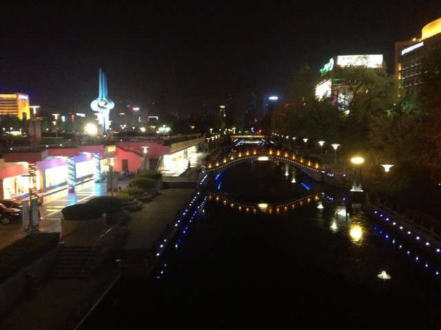 走过小桥,沿着护城河另一边往回走