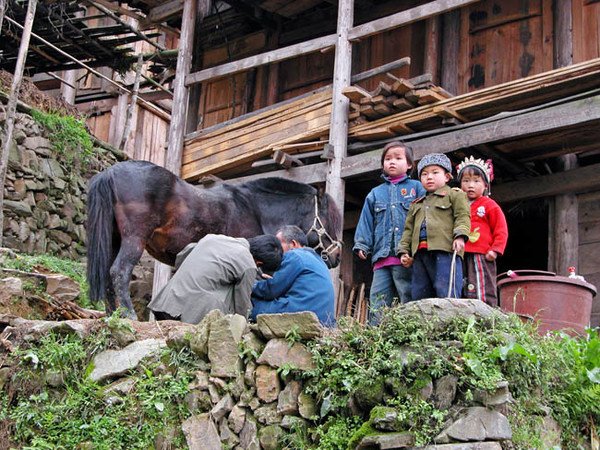 对于我们的到来,大人已熟视无睹,依然做着自己的事情,小孩们用好奇的目光打量着进寨的人。