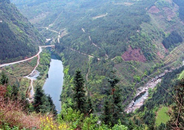 前行35公里,到达都江镇,翻越稹的后山坳,一个宽阔幽深的山谷映入眼帘,深谷两边树林青翠欲滴,谷底汇入都柳江的排长河像一条绿色飘带由西向东蜿蜒穿过。