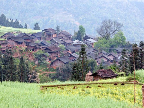 村寨依山而建,房屋高低错落、层次分明,整个村寨形似松散而又气韵相连,古朴而生动;完整保存着南方民居建筑样式——杆栏建筑,被国内众多研究专家誉为“中国民族建筑活化石”。