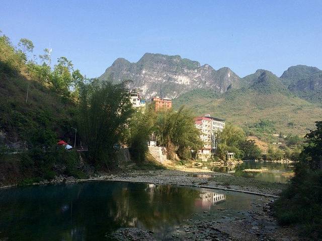 酒店门口就有去往坡月村和百魔洞的公交车,5块钱,25公里左右。在网上预订了一家连锁酒店,到了一看,太失望了,一面靠山,三面施工工地,果断取消,找了家临河的公寓凑合一晚。