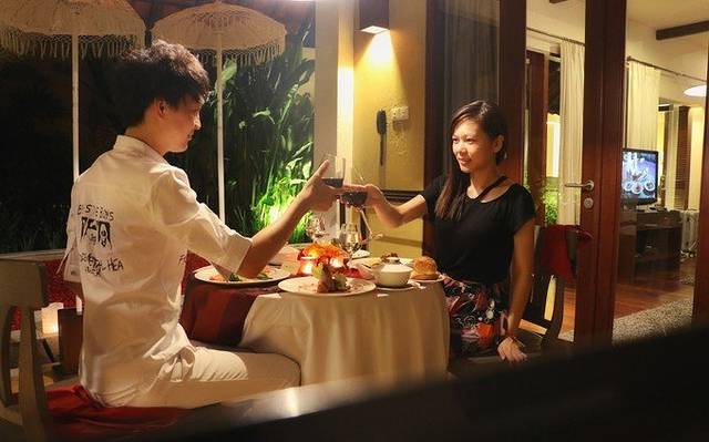 6点30去Spa ,8点20左右开始烛光晚餐。因为所有旅程预定都是范小增预定的,我只知道叶子别墅有一个烛光晚餐,然而并不知道是怎么样的。当我进入9号villa的时候,一个大大的惊喜等着我,一生最难忘的经历之一,最主要的是食物也非常好吃,作为一个吃货而言,这是很致命的