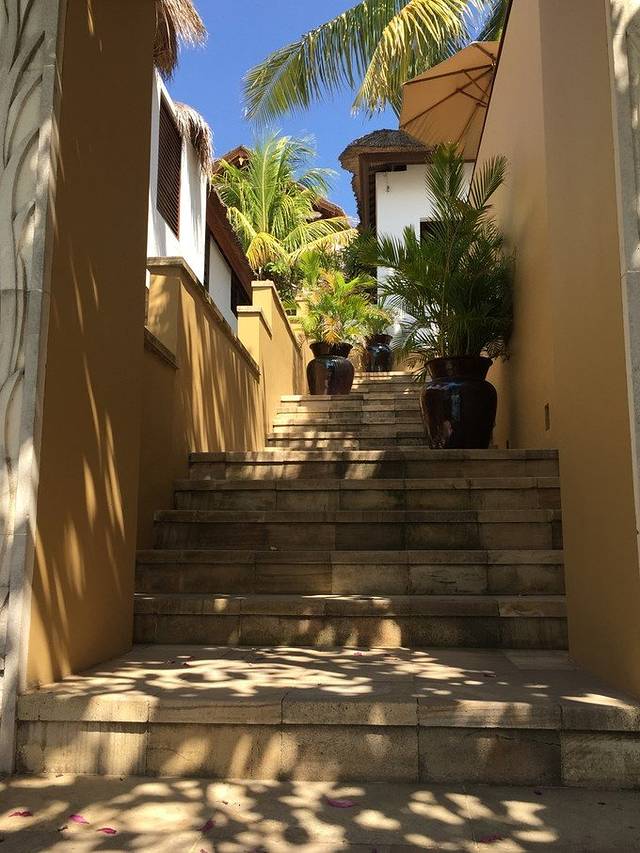 阿雅娜酒店私人沙滩,需要通过长长的阶梯才能达到海滩(也导致从海滩回来的时候,整整爬了100多个阶梯,累cry了