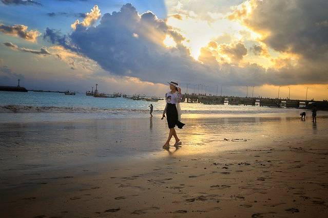 由于天气热,海滩上并没有多少人,最大的浪能冲到躺椅这边,这种程度的浪就别说下水了,分分钟把你上衣也打湿,还是安静地做个美少女吧^_^