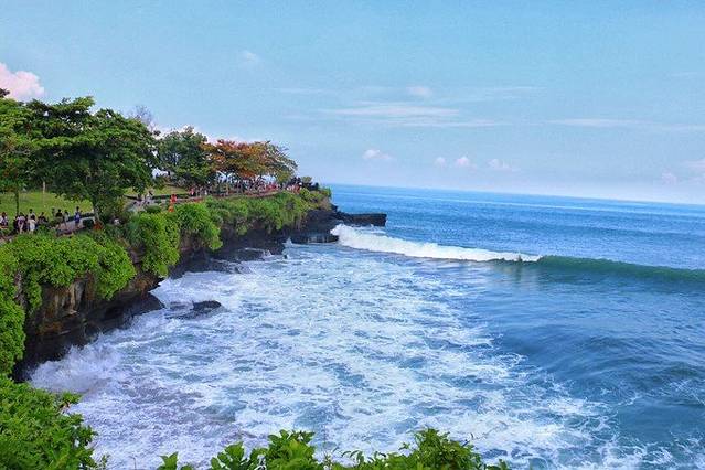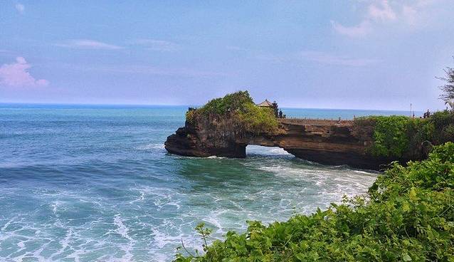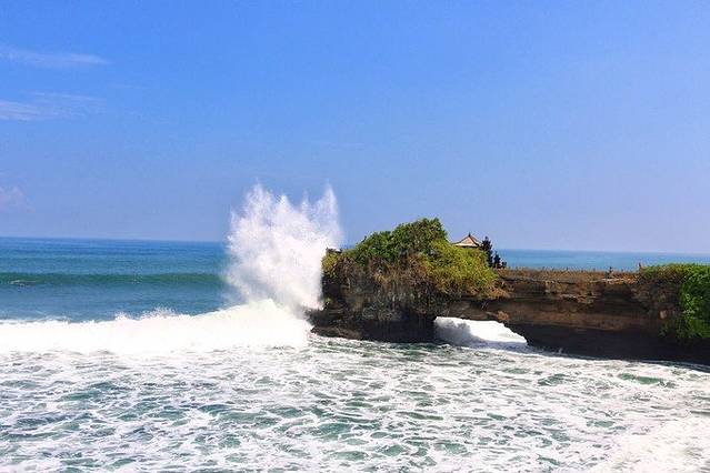 第一站是海神庙,巴厘岛三大神庙之一,坐落在海边一块巨大的岩石上。很多游记里面说日落下的海神庙是最漂亮的,可惜我们的行程安排没看到,但是阳光下的海神庙足够震撼了我们,就是太热了太晒了,献上几张美照
