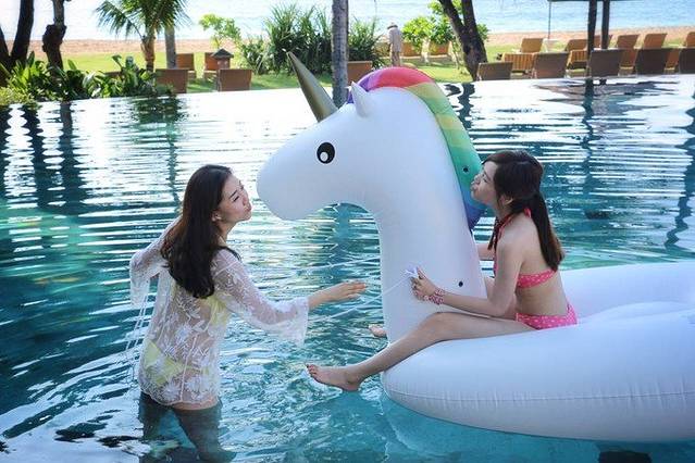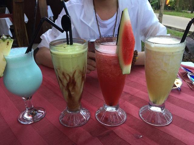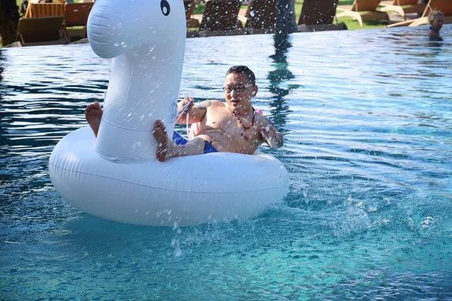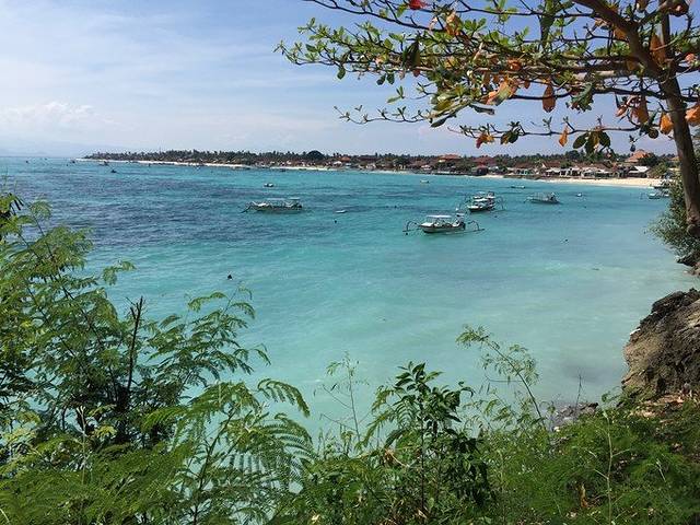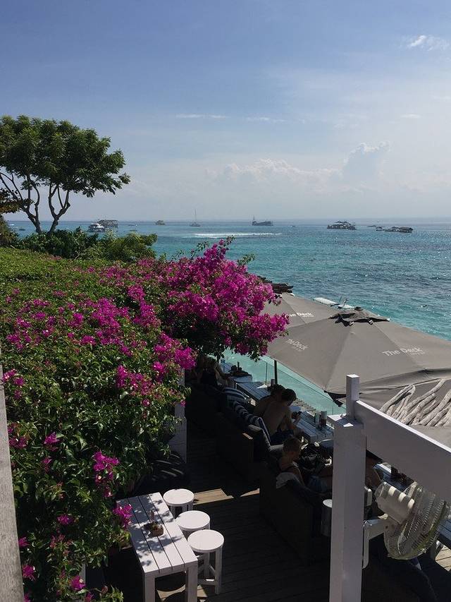 船上的自助午餐还不错,挺丰富的,口味偏淡。午餐结束后就带我们去 Coconut Beach Resort Lembongan,哪怕因为海流原因海水浑浊,你也可以领略到蓝梦岛的“玻璃蓝”,在 Coconut Beach Resort Lembongan听着音乐,泡泡无边泳池也很惬意