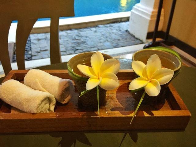 前台是有漂亮的妹纸,帮我们办理了入住,并安排了晚上的spa和蜜月烛光晚餐