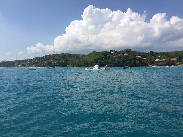 9点出发,开始我们的蓝梦岛一日游,一日游套餐我们是在网上约定的,差不多580元一人,包括了浮潜,玻璃船,香蕉船,海上弯道,独木船,海底漫步以及自助餐等等。不过可惜的是由于天气原因,海流影响,导致海水浑浊,无法进行海底漫步,浮潜也由于海水太浑浊也看不到什么鱼,香蕉船还是满刺激的,不过可能是因为晕船的原因,导致整天都晕乎乎地,所以没怎么玩刺激的项目(需要注意的是,去蓝梦岛的船都很颠簸,工作人员都会发晕船药给你,不过管不管用就要看你自己啦)