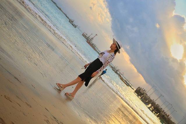 因为拍婚纱照的包车是婚纱拍摄公司定的,他们是要回努沙杜瓦的,而我们是回库塔的,所以我们决定打车回库塔,跟司机说了下,司机同意带我们可以打的的地方,可是到了打的的大路,意想不到的是司机让我们在车上等着,他下去在路边帮我们打的,还告诉出租车司机我们要去的地方,然后再来叫我们,当时感动极了,范小增毫不犹豫地给了司机小费,服务真棒