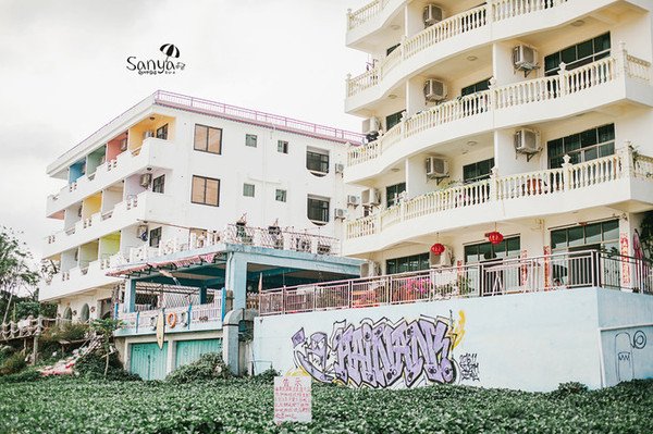 海湾边上已经建起了各种住宿,面向的主要人群为冲浪爱好者等年轻人