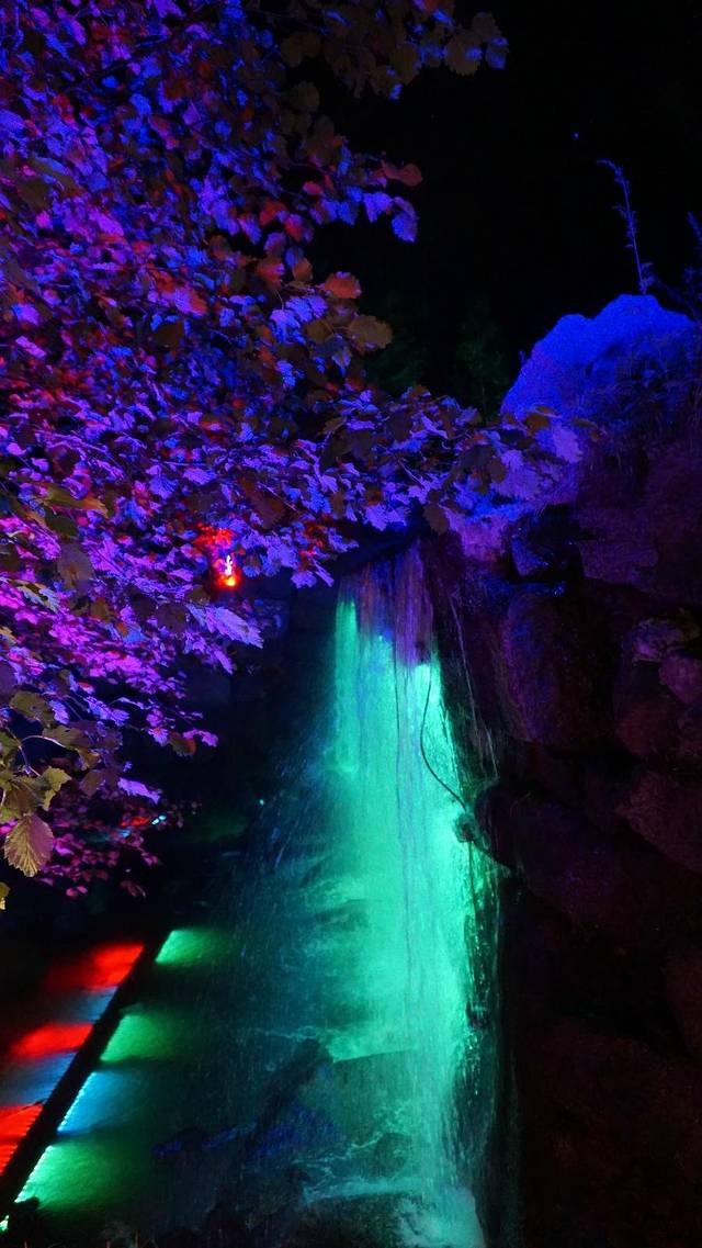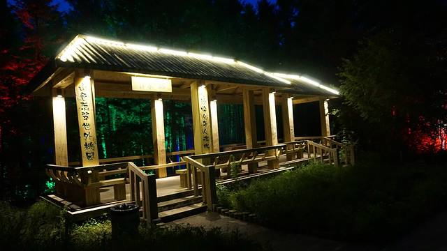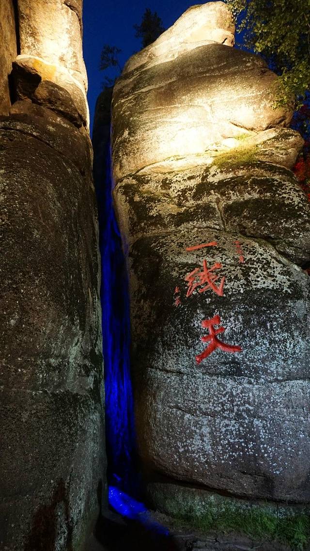 周经理大概六点半钟把我们送到景区,告诉我们只有中区和南区有夜景,我们进去的时候天还有点亮,刚好在中区先转转,小桥流水,感觉很舒服。大概七点半左右天差不多黑了,灯一下子亮起来了,超美。南区就是树林里好多的石头,有灯也不错,我们又从中区走回来,看了之前走过但灯没亮的地方,观赏夜幕与灯光下的兴安岭石林。走在林间曲折回转的木架廊道上,听着潺潺溪水声,欣赏着灯光映衬下五颜六色的林立奇石,如同身在九寨沟,比九寨更加幽静。密林深处不经意间出现的鬼斧神工下各式石头 ,一线天、玉壶石、鹰嘴石都惟妙惟肖,令人惊叹于天公的神来之笔,造就如此美景。。