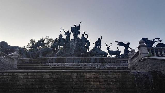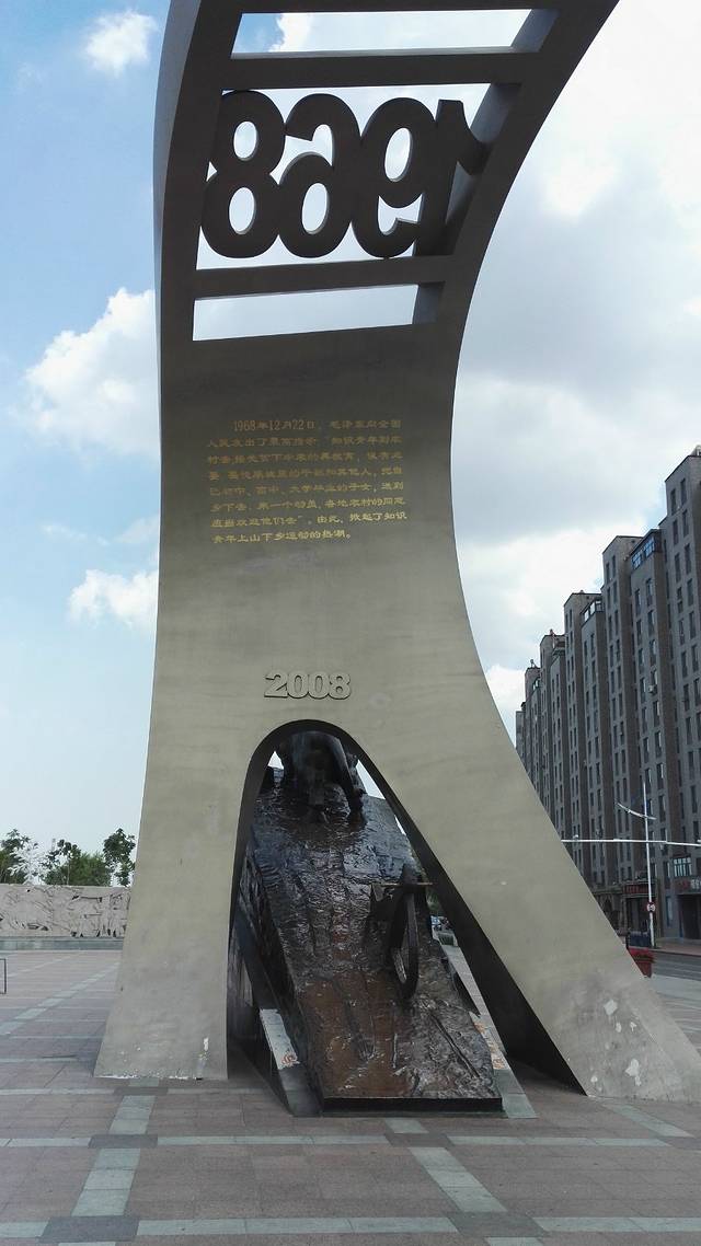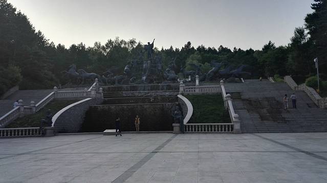 早饭在宾馆吃的,虽然简单但很干净,味道也不错。前一天在新玛特买了些面包,花生等,准备晚上到伊春再吃饭。大概中午的时候到了佳木斯,网上说江边的知青广场,比较有名,就停下来看看,感觉这个城市挺干净,欣赏着广场中矗立的“开拓者正在驾驶耕牛开垦土地”的主题浮雕和毛主席题写的“广阔天地、大有所为”,臆想着来自全国各地的数以万计的知识青年涌向黑龙江这片热土战天斗地,开发北大荒的情景。中午挺热的,简单看看,我们就继续出发,过了鹤岗就没有高速了,省道一直到伊春,路况还不错。