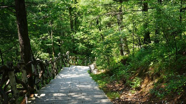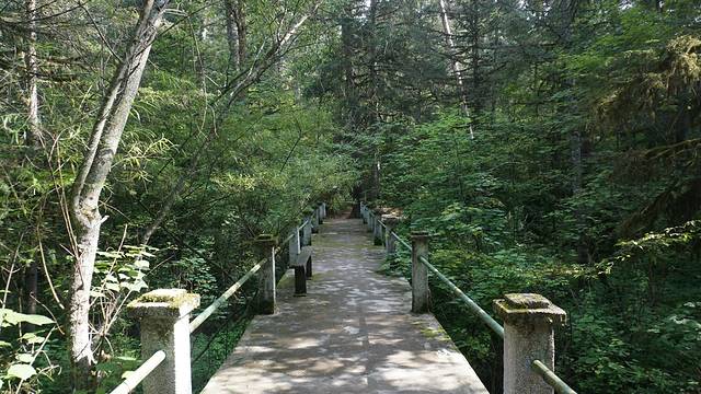 从汤旺河出发的时候,联系了之前说好五营公园取票的美女,可是她说她有点事,也从伊春往那去,但我们路程较近,到了五营公园售票处,她还没有到,她为了不影响我们的行程,微信转了我360元票钱,也就是她补了我们票的差价,比较讲究的商家。买了门票和10元/人车票,便可以进入,但车只能停在停车场,然后坐景区小客到大门,这也就是那10元钱车票钱。进入景区后,感觉没有明显的指示牌,所以就请了讲解员,个人觉得到景区真应该请讲解员,不然什么都不知道,光是照像看景了。请了讲解员,才知道森林里都有什么树,怎么形成的等等,更深入了解景区,才不算白来,而且他们会带我们走最合适的路线,不浪费时间和脚力。我们请的是假期来帮忙的一个小伙子,他就是山上的孩子,在念大学,讲解的很生动,不是固定的那种讲解词,他是根据他的生活和理解,说让我们更明白的话,很风趣。因为下雨天赐湖看不了,森林爬山的大家也觉得累,所以大概一个半小时就出来了。有了讲解,大家也玩的很开心。大概不到四点往伊春出发。