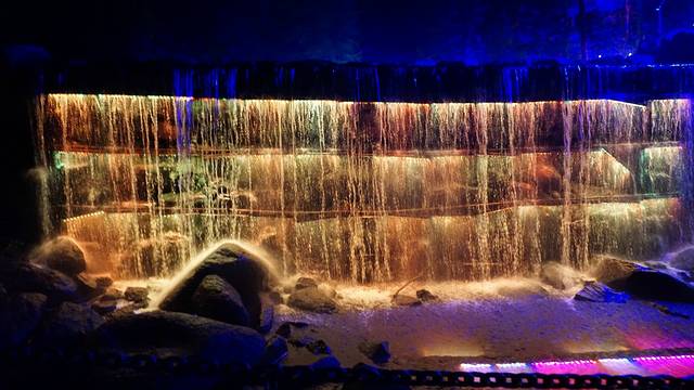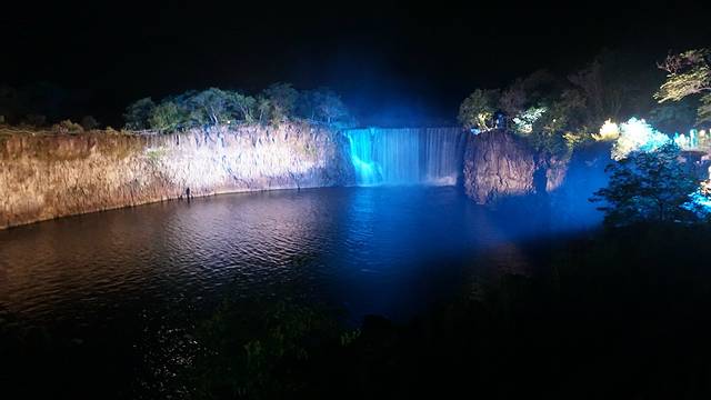 在宾馆买的优惠门票90元/张,一张便宜了10元,当天晚上就可以入园,我们晚饭后从北门进去,录了指纹,走了大约15分钟,到达吊水楼瀑布,只有吊水楼瀑布安装了灯,所以只有这一个景可以看,还不错。