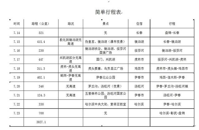 简单行程,一目了然。我们不想太累,所以每天公里数并不多,大家玩的很开心,司机也不累。