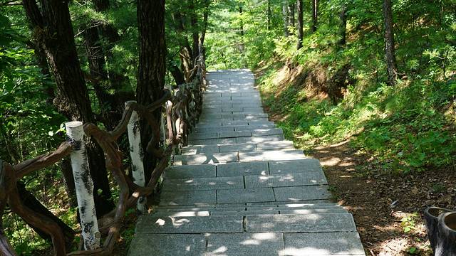 早餐在家庭宾馆对面的一楼吃了早饭,挺干净的,包子、花卷、粥、鸡蛋都是1.5元,馄饨10元。有点小贵。饭后退了房间,我们又向汤旺河景区出发了,晚上的时候可以停在靠近里面的停车场,白天的时候,只能停在外面的大停车场,小停车场白天是不开门的。大停车场到小停车场路上全是卖东西的,先到售票窗口买了景区游览车的票,10元/张,要和卖票的工作人员说我们是昨天团队用卡登记过身份证的客人。然后到门口每个人拿着自己的身份证和车票,入园。汤旺河景区共分东、西、南、北、中五个景区,其中南区和中区有夜景,据说南、中、北区比较有看头,南区最小,有一线天之类的石头,北区石头造型也很多,中区主要是沿着小溪走,感觉很舒服。东区全是森林,还有一个观景台,也不错,西区我们放弃了,因为听说较远,而且主要也是森林。我们坐车直接到南区,看了前天晚上看过夜景的地方,然后没从出口出来,直接往外走,就是东区。开始就全是森林,走到快到出口的时候,有高高的小山似的观景台,上去后果然感觉不一样。再往前走一千多米就到东区的出口。然后它的对面就是北区的出口,我们三人小分队就从这上了北区,北区比南区要大,也要险一些,石头更多,我们大概走了一个半小时,有一处观景塔,35元/人,电梯上楼,走到了就应该上去看看,感觉森林象绿色的大海一样,小风吹着,超爽。中午的时候在景区坐观光车有些费劲,因为司机也到了午饭时间,大多到上面来吃饭,都暂时不回去,等了十多分钟,才有车返回。一上午走了南、东、北区,真是有些累了,但大家一致认为这个景区非常不错,这是伊春唯一的五星景区。然后在车上简单午饭,出发去五营森林公园。虽然早上旅店店主说,看到汤旺河和茅兰沟,也可以不用去五营,但时间够用,而且大老远来一次,就都看看吧,而且昨天也一起买了团队票,正常是60元/张,团队票50元/张。