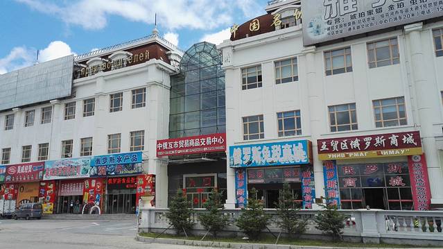 简单休息,就去外面逛街了,服装价签都是以卢布为单位,一位年龄稍大的女售货员告诉我们:这些服装和商品主要是卖给俄国人,价格偏高,质量也很差,是骗老外的。我很感谢这位大姐没有欺骗国人,却又总觉得心里不是滋味,然后去逛俄罗斯商品店,感觉不论是食品还是生活用品都很不错,只是这次出行车太挤,所以并没有买太多的礼品,只是买了一大瓶俄罗斯啤酒和一些饼干路上吃,晚上在宾馆斜对面街,据说是小吃街吃了烤串和刀削面,当地猪肉串很不错。这边的消费水平总的来说不算高,非常喜欢
