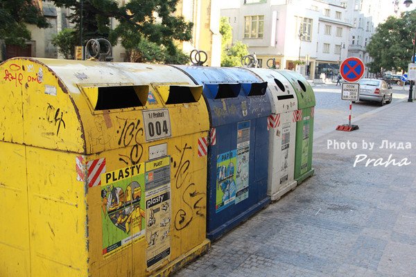 垃圾桶不同的颜色,分类不同,个也忒大了,几天一收啊,哎呦操这闲心呢...
