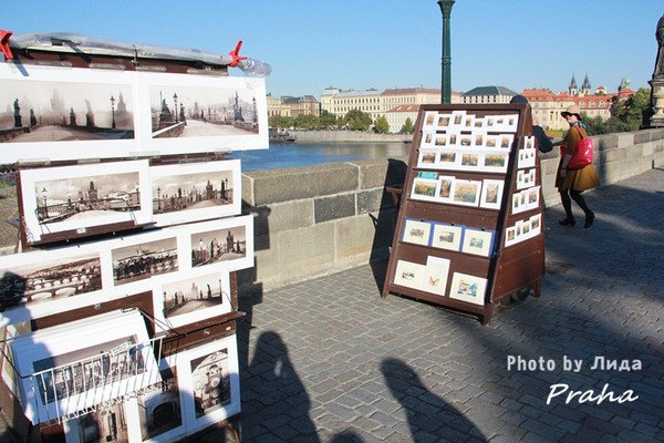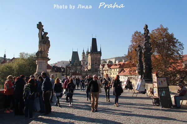白天的查理大桥,热闹非凡,摆摊的、画画的、打啵儿的、拍照的、偷包的...