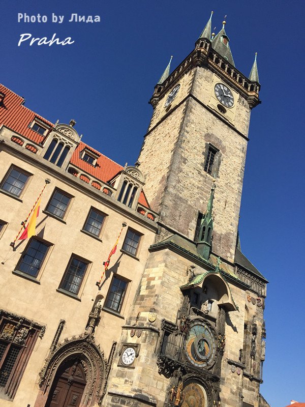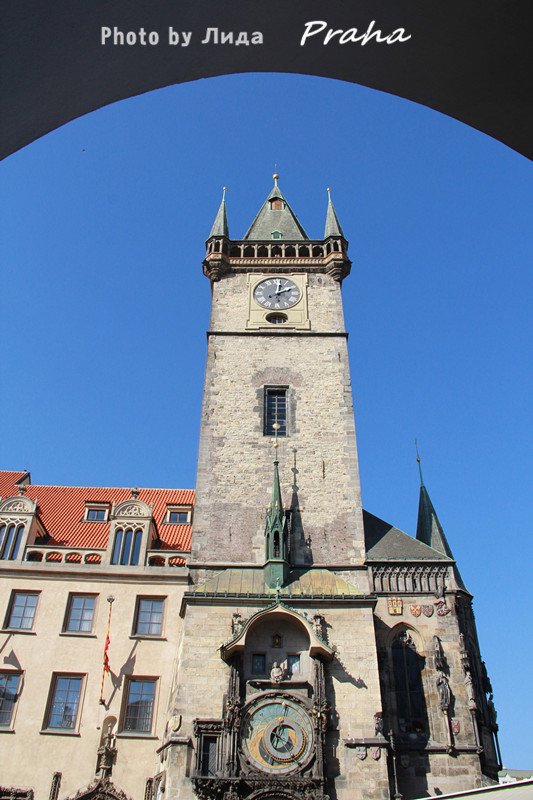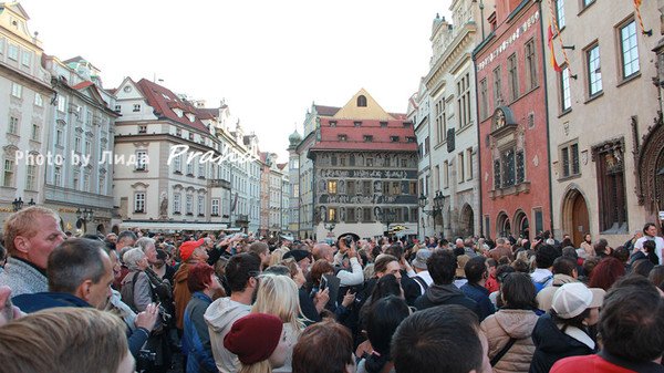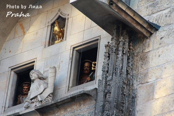 一座建于1410年的钟楼,尽管钟楼的外墙墙皮因年代久远已部分剥落,但它却以精美别致的自鸣钟而闻名于世。凡是到布拉格的游人,总要前往老城广场观赏这座古老的钟楼,路经钟楼的布拉格市民也常常停下来校对自己的手表。每到整点,钟上的窗门便自动打开,钟声齐鸣,12个圣像如走马灯似地一一在窗口出现,向人们鞠躬。这个复杂而又奇妙的自鸣钟,是15世纪中期由一位钳工用锤子、钳子、锉刀等工具建造的,至今走时准确。