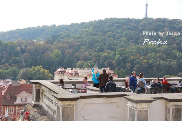 从布拉格城堡出来,这里是我最想久坐的一个星巴克,从它的露台俯瞰整座城,来,再给我舌头...