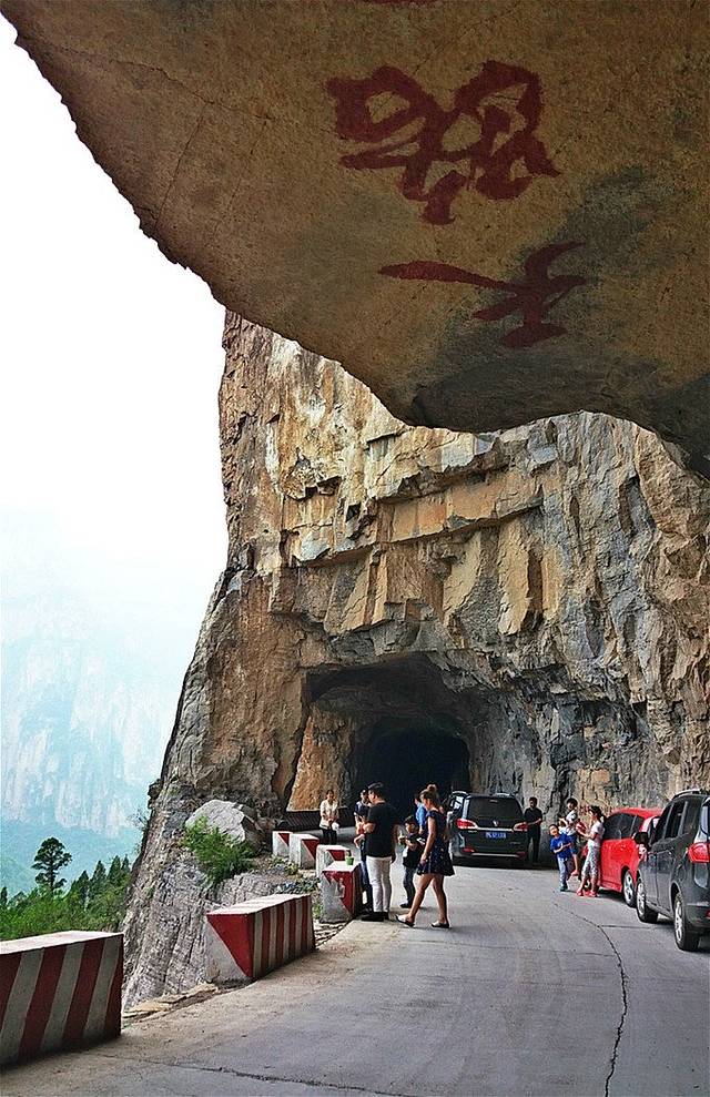 天路入云,从河南方向看是反的字,从山西方向来才是正的。