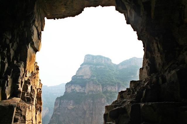 在道路临悬崖的一侧每隔一段距离就有一个洞口。穽底挂壁公路有39个洞口,从远处望去,隧道外侧分布的洞口就像一扇扇窗户。既可以通风又可以照明。