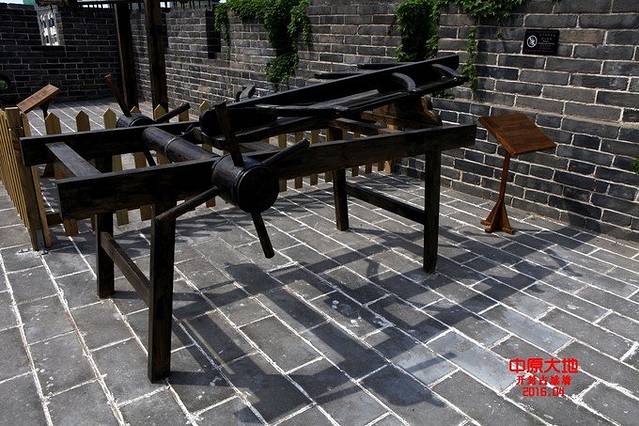 城墙上还陈列着一些古代用来守城的武器和用品。