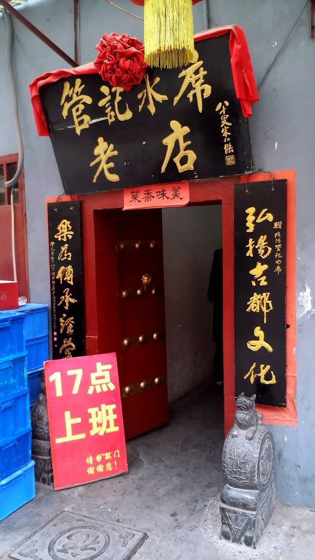 为了品尝到正宗的水席,我们找到一家评价很高的管记水席老店,老店位于老城区菜市场附近。老店果然是名不虚传,我们是12点半到的,很多人仍在等位,我们等了一个多小时才坐到桌前。我们点了一份8道菜的套餐。