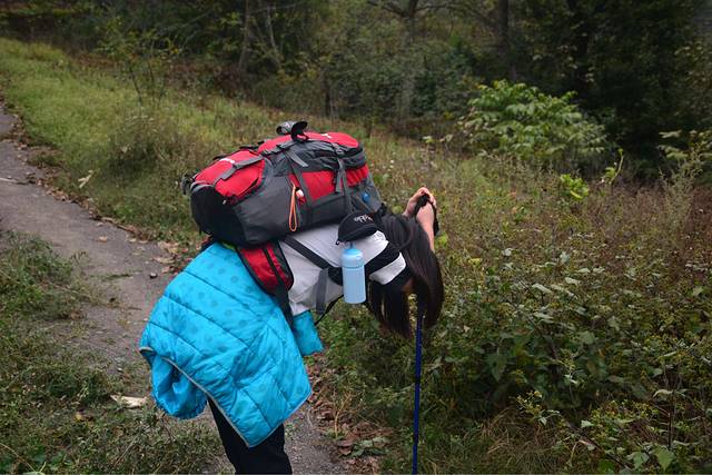 累了之后像这样把背包横着放在背上,真的减重一半啊