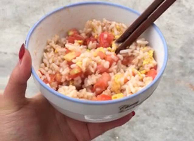 却突然想起带的番茄,于是问老板要了个鸡蛋自己开小灶炒了番茄蛋炒饭!