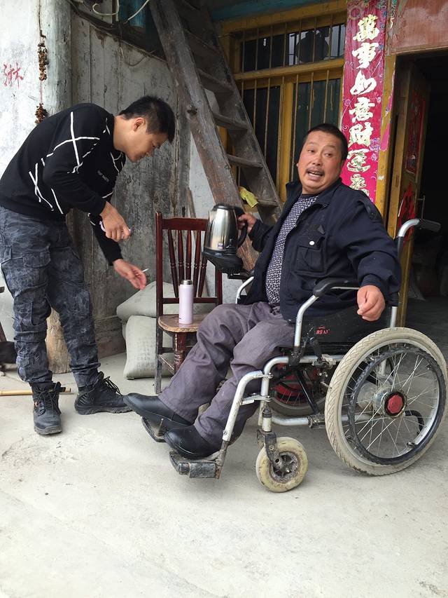 大哥正在说“还有谁要热水的,快来倒哦~”